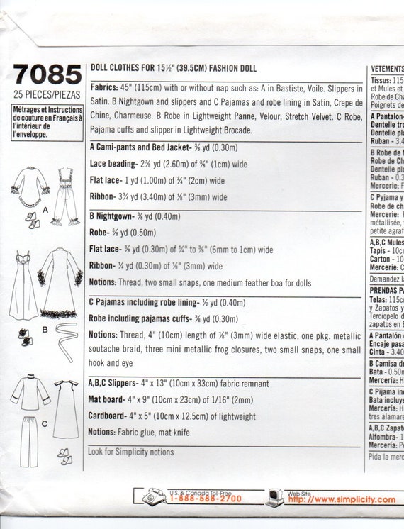 Simplicity 7085 Gene Couturier Doll Lounging Leisure Hostess Etsy