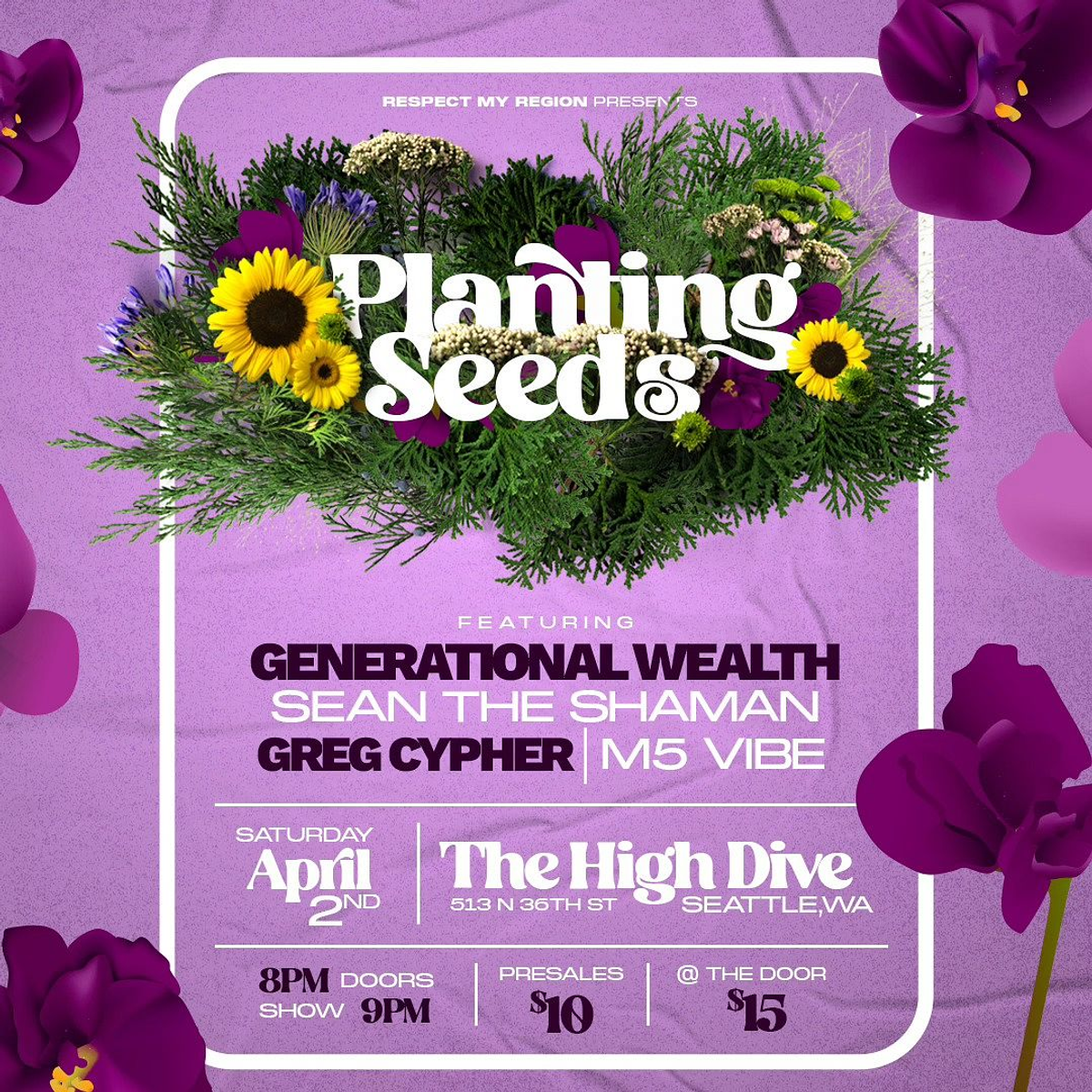 Planting Seeds Ft Generational Wealth Sean The Shaman Greg Cypher And M5 Vibe At High Dive In Seattle Wa Saturday April 2 2022 Everout Seattle