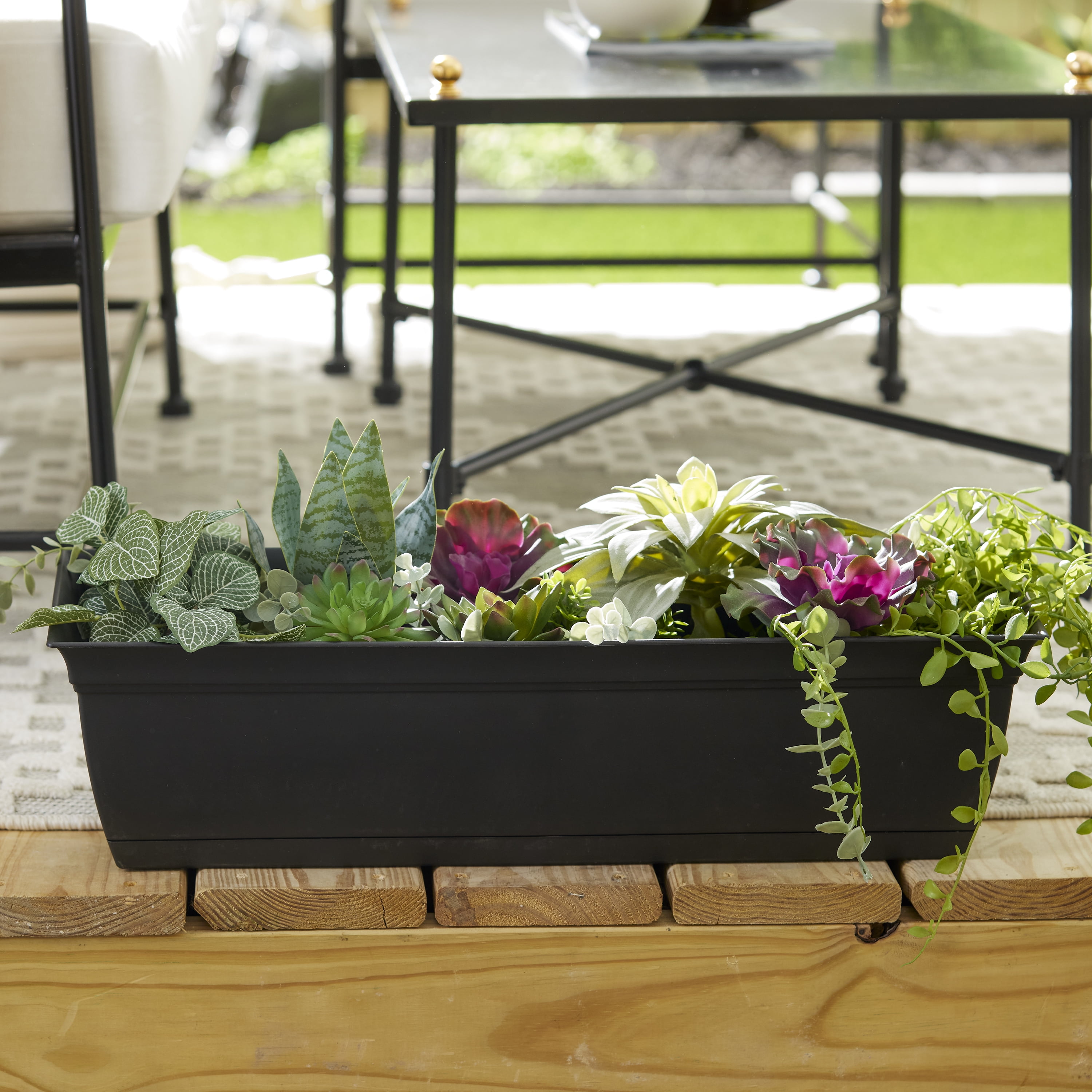 Amazon Com Mayne Fairfield 4ft Window Box Black 48in L X 11in W X 11in H Polyethylene Built In Water Reservoir 5823 B Plant Window Boxes Patio Lawn Garden