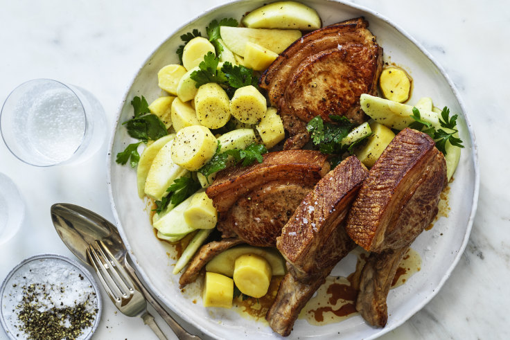 Neil Perry Recipe Barbecued Pork Chops With Apple And Potato Salad