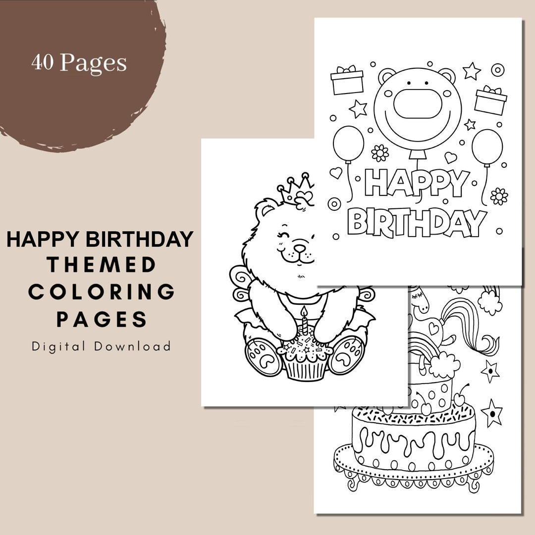 Happy Birthday Themed Coloring Book Pdf Printable Pages Digital Download Download Now Etsy